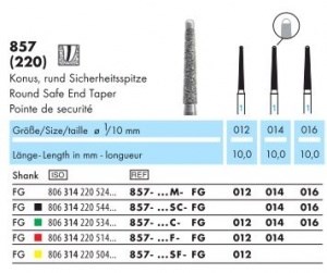 857-012SF-FG Бор алмазный NTI, форма конус круглый, с безопасной верхушкой, сверхмелкое зерно