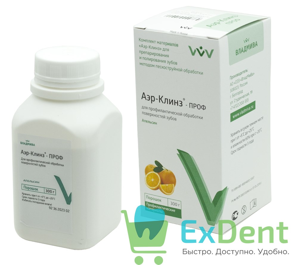 Купить Аэр-Клинз Проф - апельсин, порошок для профилактической обработки поверхностей зубов (300 г) произведенный компанией ВладМиВа вы можете в ExDent.ru по цене 740руб.