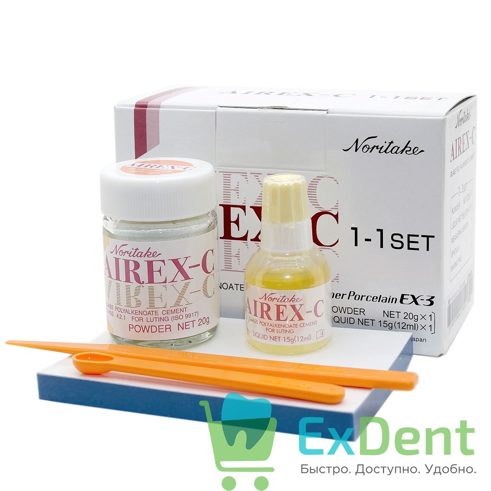 Купить Airex-C (Айрекс) - стеклоиономерный цемент для прокладок и фиксации зубных протезов (20 г + 15 г) произведенный компанией Kuraray Noritake вы можете в ExDent.ru по цене 2 700руб.