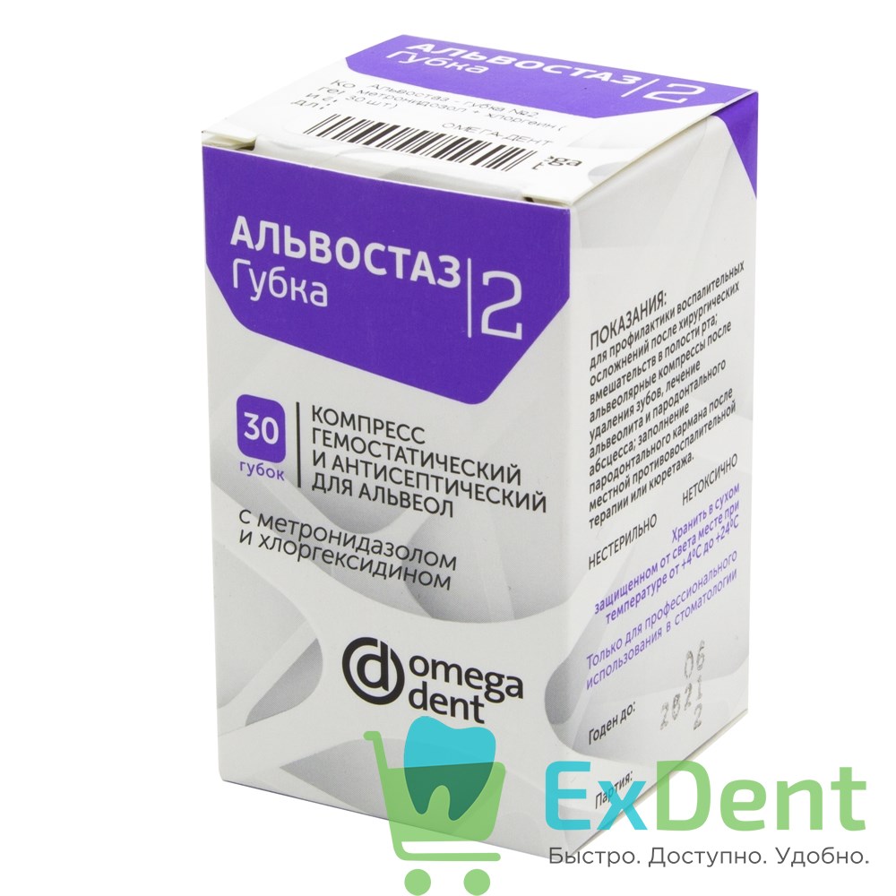Купить Альвостаз - губка №2, метронидозол + хлоргеин ( 30 шт) произведенный компанией ОМЕГА-ДЕНТ вы можете в ExDent.ru по цене 1 120руб.