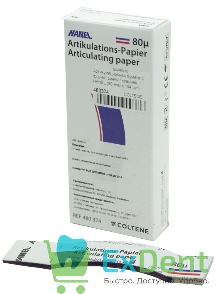 Артикуляционная бумага HANEL 80 мкм синяя/красная C форма 144 шт/уп Coltene – это незаменимый инструмент для стоматологических процедур. Она используется для определения контактов между зубами и правильной настройки прикуса.