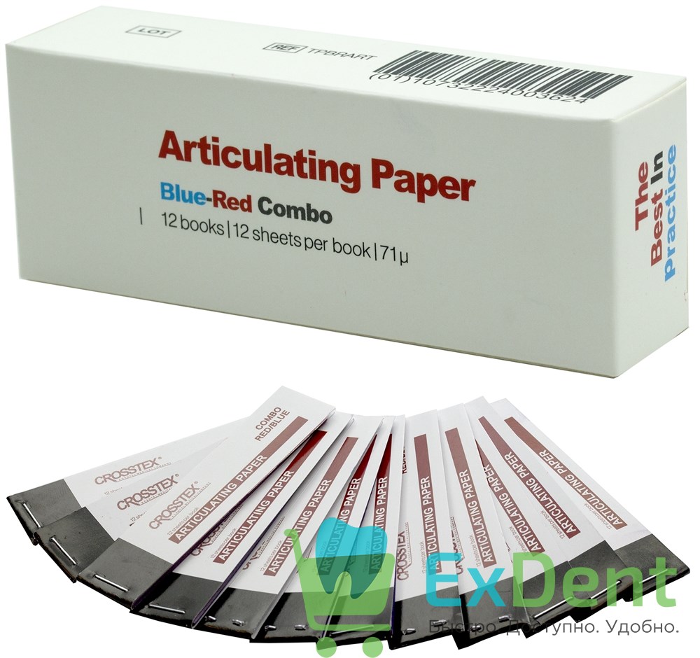 Купить Артикуляционная бумага прямая, синяя / красная CROSSTEX (71 мкм х 12 шт) произведенный компанией Crosstex вы можете в ExDent.ru по цене 0руб.