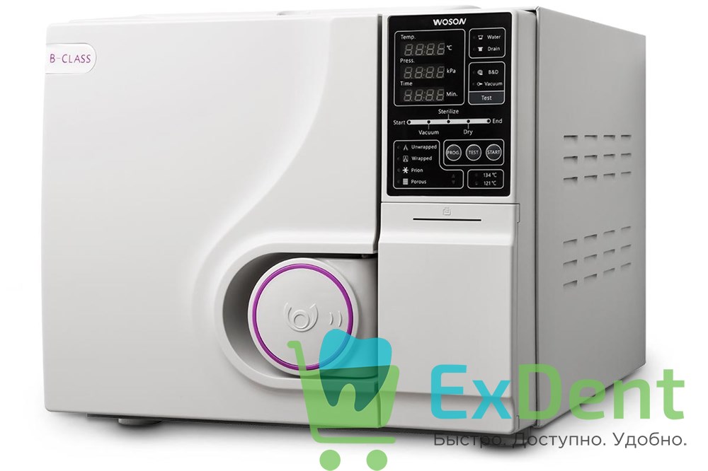 - Стандартный В-класс стерилизации с трехкратным вакуумированием и сушкой, остаточная температура простерилизованного инструмента менее 0,2%