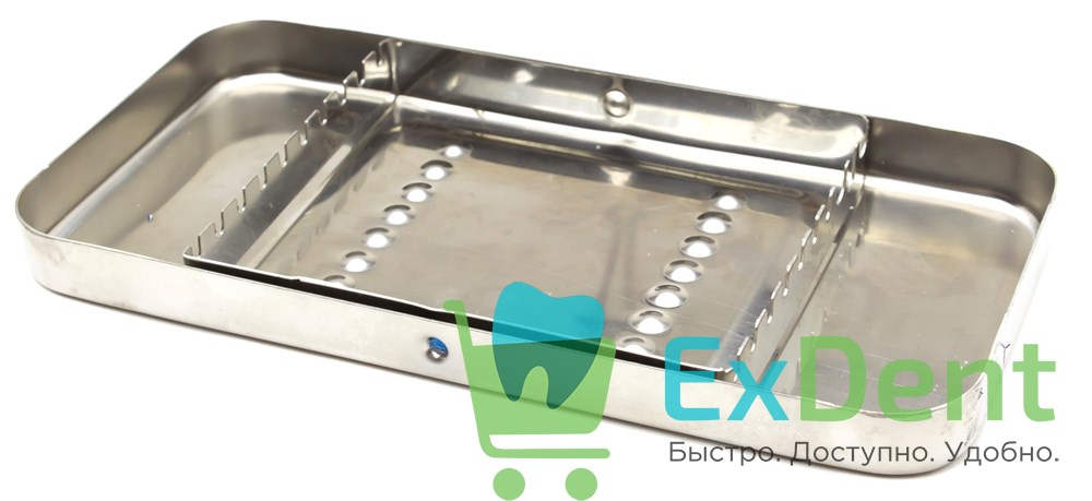 Металлический, прямоугольный бокс с крышкой, предназначенный для хранения и стерилизации инструментов.