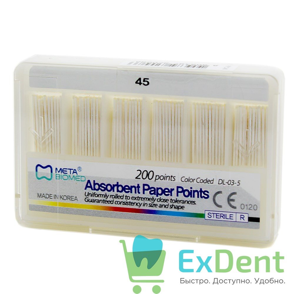 Бумажные штифты 02 №45 Meta - для удаления влаги в канале (200 шт)