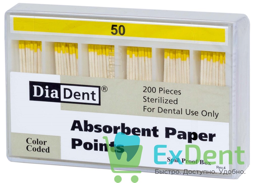 Купить Бумажные штифты 02 №50 DiaDent для удаления влаги в канале (200 шт) произведенный компанией DiaDent вы можете в ExDent.ru по цене 0руб.
