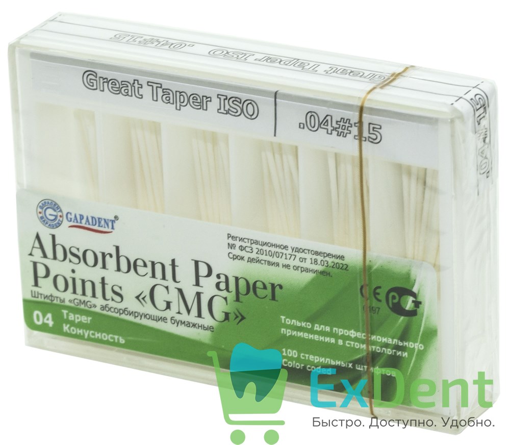 Купить Бумажные штифты 04 №15 GMG - для удаления влаги в канале (100 шт) произведенный компанией GMG вы можете в ExDent.ru по цене 0руб.