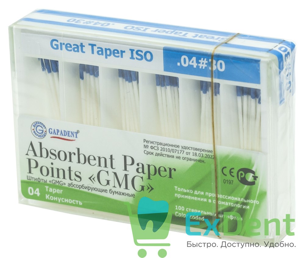 Штифты GMG бумажные абсорбирующие бумажные штифты для подготовки (высушивания) корневых каналов зубов при эндодонтическом лечении.