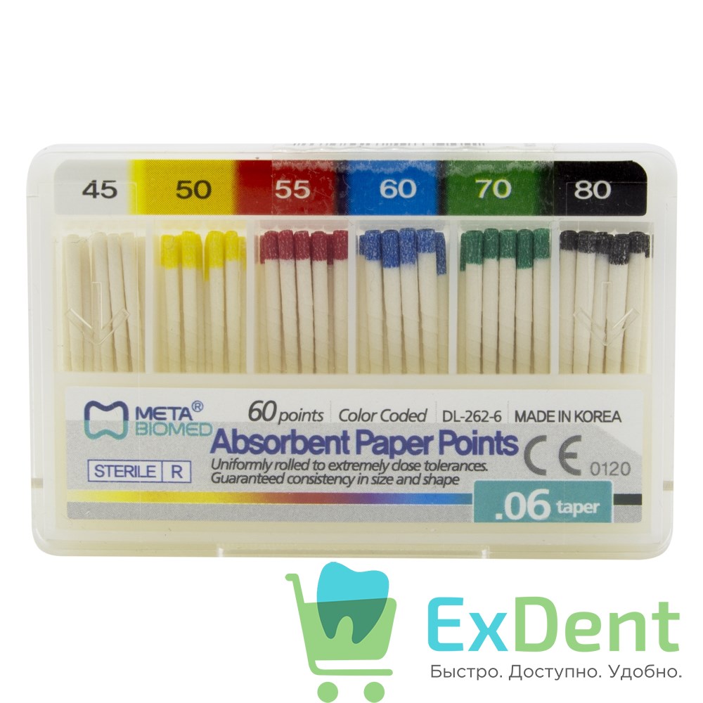 Бумажные штифты 06 №45-80 Meta - для удаления влаги в канале (60 шт)
