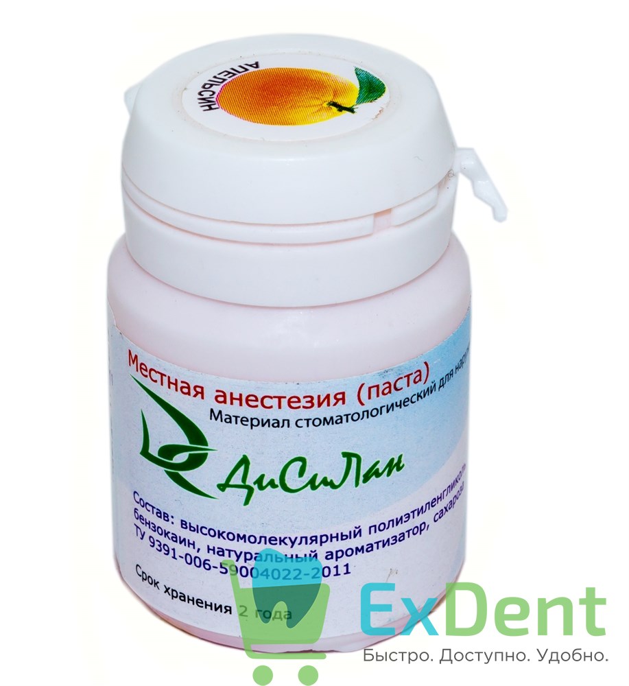 Купить Дисилан (апельсин) - паста для анестезии (30 мл) произведенный компанией Эстэйд-Сервисгруп вы можете в ExDent.ru по цене 430руб.