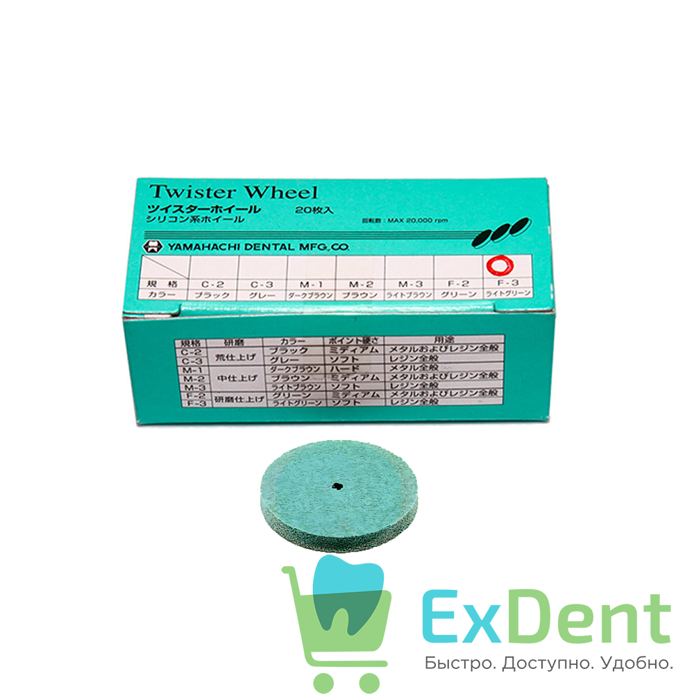 Купить Диск силиконовый Twister Wheel F-3 для финишной обработки акрила, светлозелёный (20 шт) произведенный компанией YAMAHACHI вы можете в ExDent.ru по цене 1 320руб.