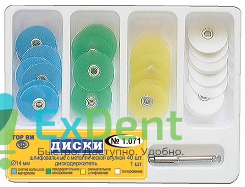 Купить Диски шлифовальные с металлической втулкой, набор 14 мм (4 х 10 шт + дискодержатель - 1 шт) произведенный компанией ТОР ВМ вы можете в ExDent.ru по цене 310руб.