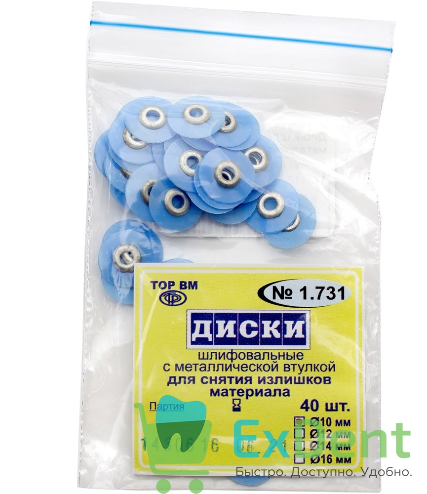 Купить Диски шлифовальные с металлической втулкой синие, для снятия излишков материала, 10 мм (40 шт) произведенный компанией ТОР ВМ вы можете в ExDent.ru по цене 230руб.