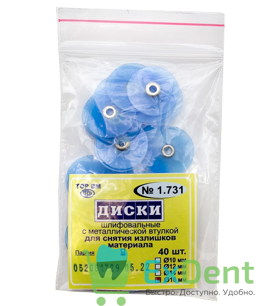 Купить Диски шлифовальные с металлической втулкой синие, для снятия излишков материала, 16 мм (40 шт) произведенный компанией ТОР ВМ вы можете в ExDent.ru по цене 230руб.