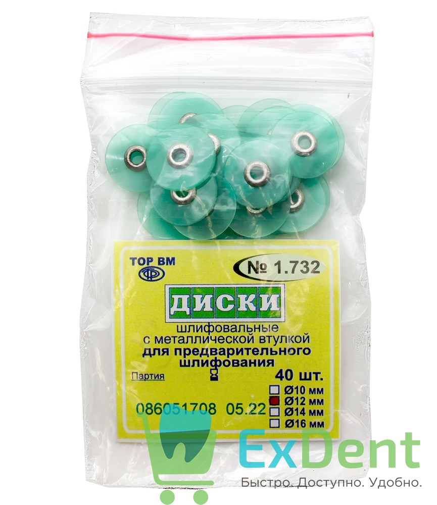 Купить Диски шлифовальные с металлической втулкой зеленые, для предварительного шлифования, 12 мм (40 шт) произведенный компанией ТОР ВМ вы можете в ExDent.ru по цене 230руб.