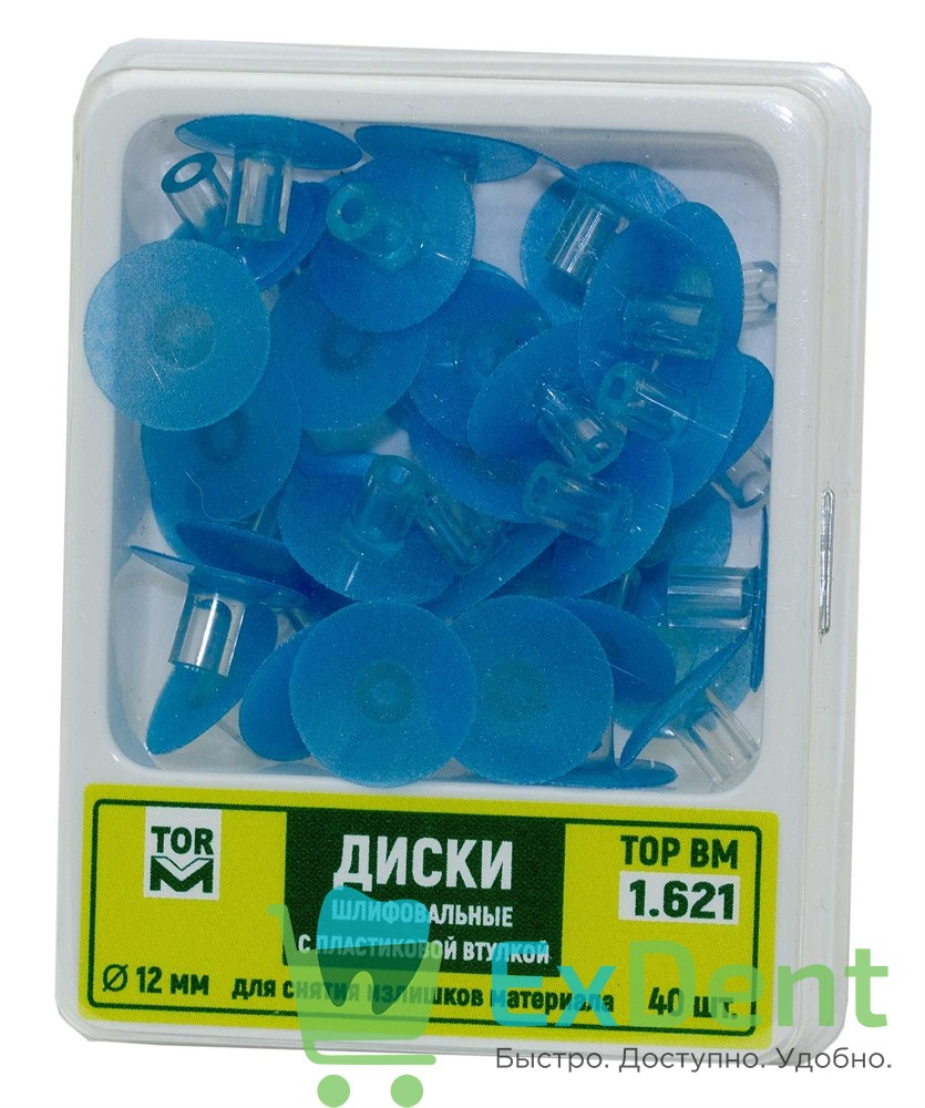 Купить Диски шлифовальные с пластиковой втулкой, синие для снятия излишков материала 12 мм (40 шт) произведенный компанией ТОР ВМ вы можете в ExDent.ru по цене 230руб.