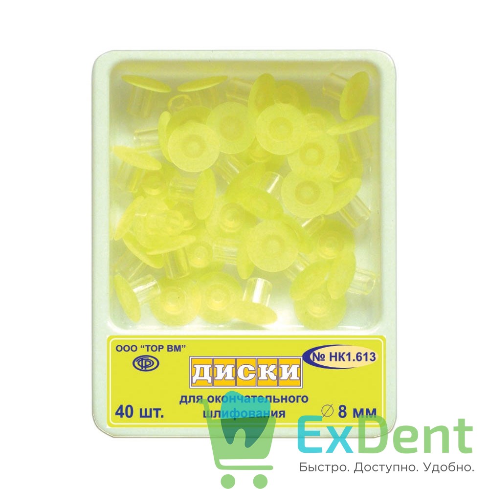 Купить Диски шлифовальные с пластиковой втулкой, желтые для окончательного шлифования 8 мм, 40шт произведенный компанией ТОР ВМ вы можете в ExDent.ru по цене 0руб.