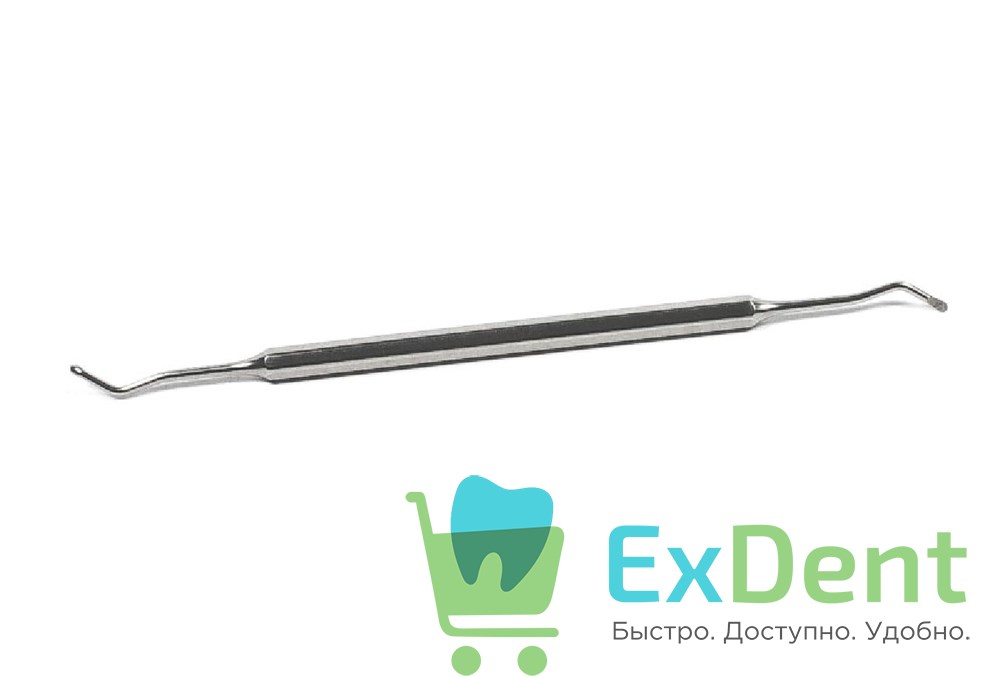 Предназначен для удаления из кариозной полости остатков пищи, поврежденного дентина, временных пломб, мягкого зубного налета, наддесневых зубных отложений. Инструмент представляет собой цельное изделие длинной 160 мм, состоящее из шестигранной ручки и двух рабочих частей.