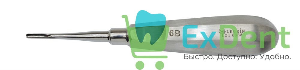Штыковидный элеватор (элеватор Леклюза). Соединительный стержень элеватора штыкообразно изогнут (рис. 6.8, г). Рабочая часть (щечка) имеет копьевидную форму, сужается и истончается к концевому отделу. Одна поверхность щечки гладкая, другая — закругленная. Ручка круглая, более толстая в средней части, расположена перпендикулярно по отношению к соединительному стержню и рабочей части. За счет штыковидною изгиба продольная ось щечки и ось соединительного стержня расположены в параллельных плоскостях. Элеватор предназначен для удаления третьего нижнего большого коренною зуба.