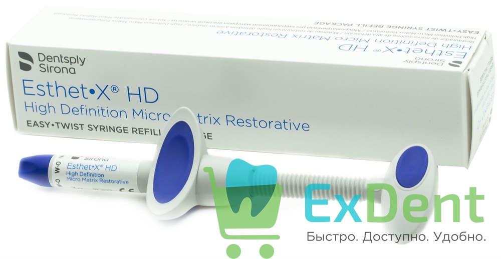 Микроматричный реставрационный материал высокого разрешения Esthet X HD — это светоотверждаемый, рентгеноконтрастный композитный материал для реставрации передней и боковой групп зубов, как в постоянном, так и в молочном прикусе.