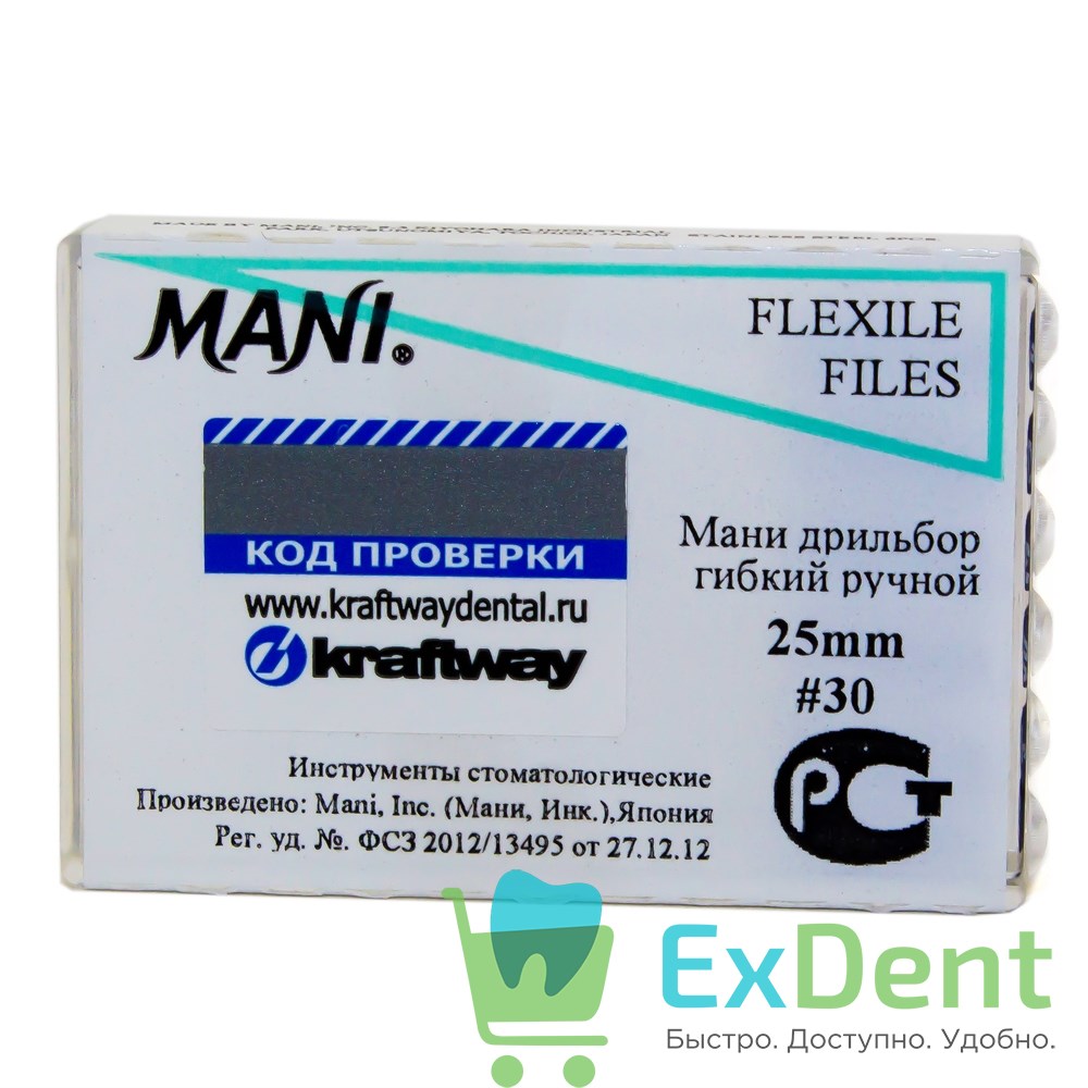 Купить FLEXILE FILES №30 25 мм Mani для препарирования искр-ных каналов опиливающими движениями (6 шт) произведенный компанией вы можете в ExDent.ru по цене 0руб.