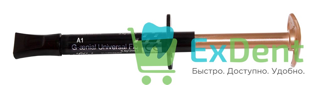 ДЖИ СИ Гениал Юниверсал Фло. Универсальный светоотверждаемый текучий композит повышенной вязкости. Оттдельные оттенки. Материала в шприце (2 мл/3.4 г).