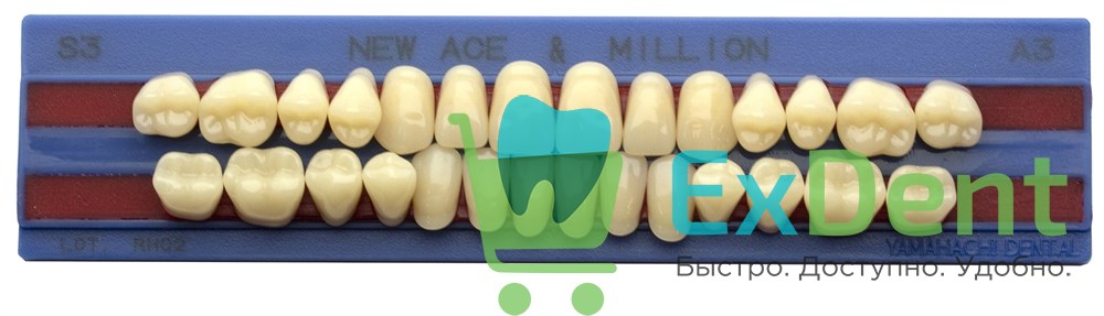 Купить Гарнитур акриловых зубов A3, S3, M30, Million и New Ace (28 шт) произведенный компанией YAMAHACHI вы можете в ExDent.ru по цене 300руб.