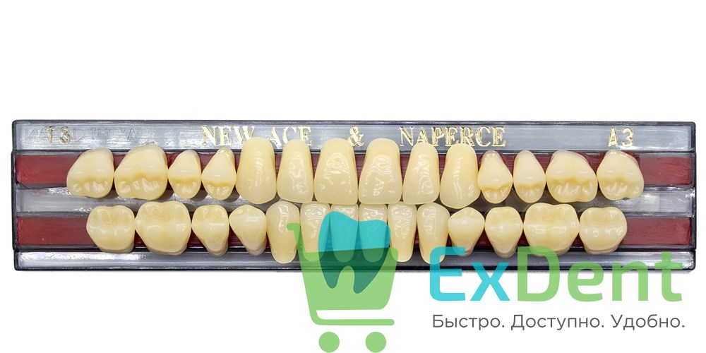 Купить Гарнитур акриловых зубов A3, T3, Naperce и New Ace (28 шт) произведенный компанией YAMAHACHI вы можете в ExDent.ru по цене 500руб.