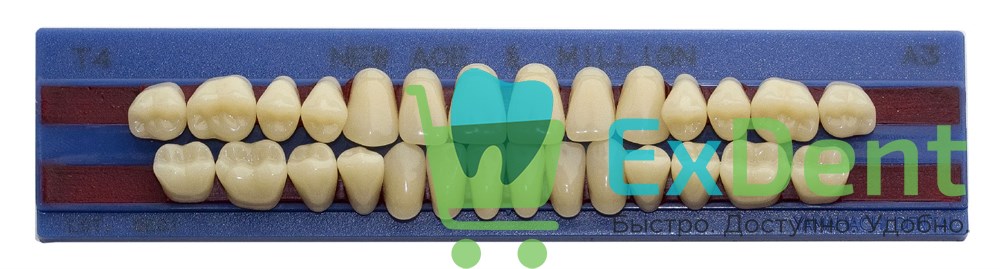 Купить Гарнитур акриловых зубов A3, T4, M30, Million и New Ace (28 шт) произведенный компанией YAMAHACHI вы можете в ExDent.ru по цене 300руб.