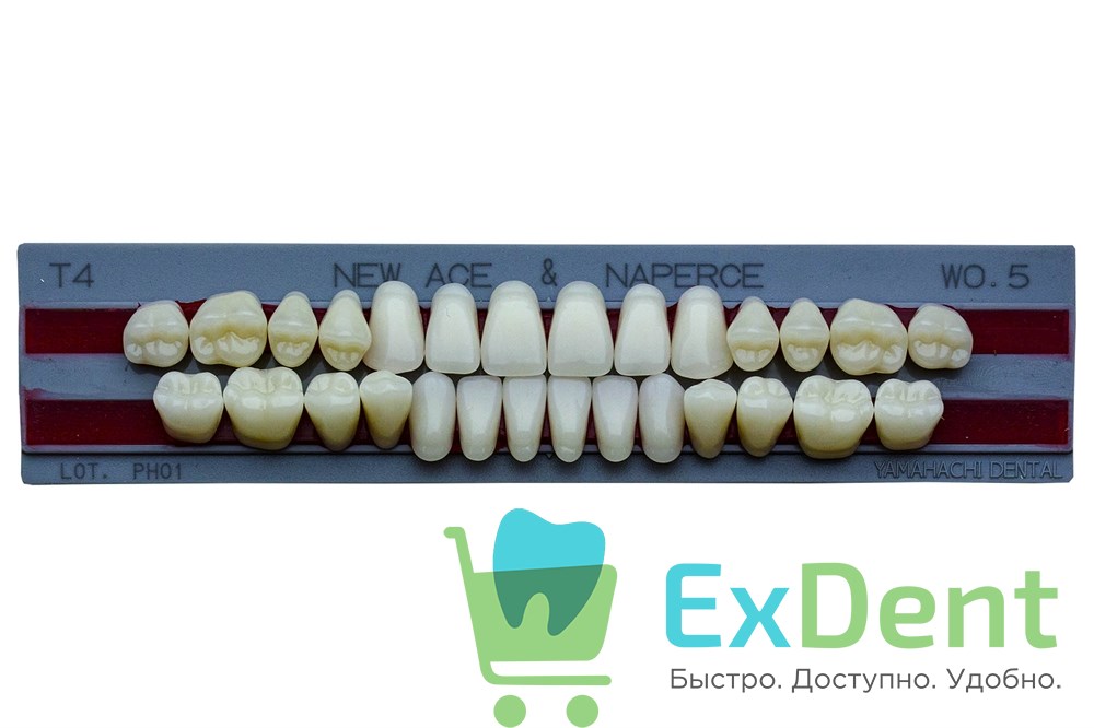 Купить Гарнитур акриловых зубов W05, T4, Naperce и New Ace (28 шт) произведенный компанией YAMAHACHI вы можете в ExDent.ru по цене 500руб.