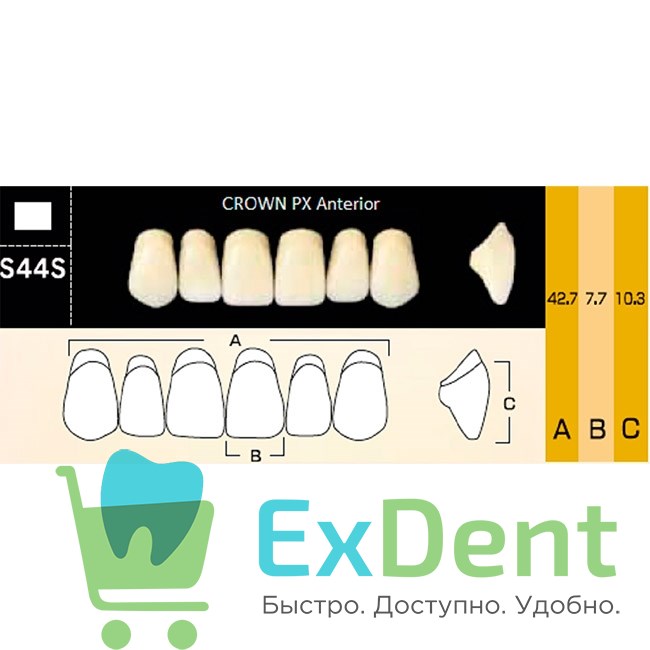 Crown PX Anteriors, фасон S44S, цвет A2 — зубы композитные трёхслойные, фронтальные, верхние на планке от производителя Yamahachi