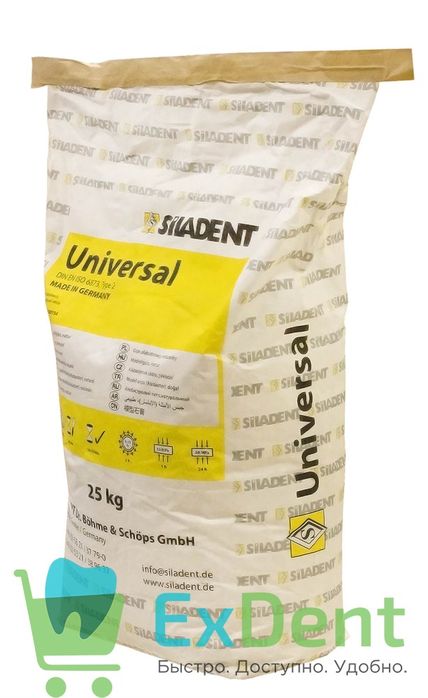 Купить Гипс алебастровый Universal, 2 класса, белый (25 кг) произведенный компанией Siladent вы можете в ExDent.ru по цене 2 760руб.