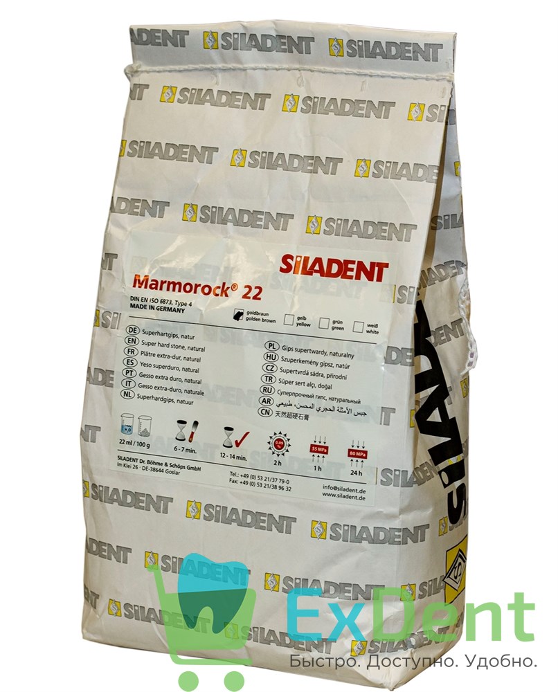 Купить Гипс суперпрочный Marmorоck 22, 4 класса, золото-коричневый (5 кг) произведенный компанией Siladent вы можете в ExDent.ru по цене 1 950руб.