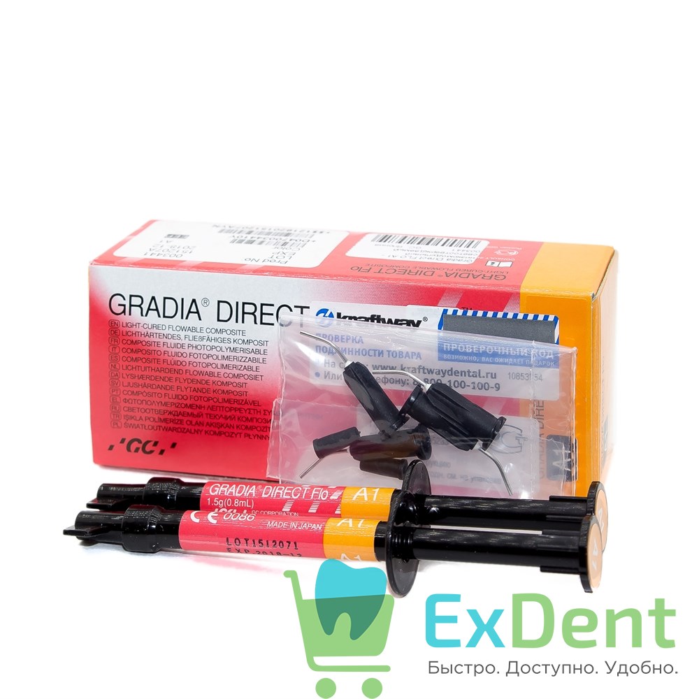 Gradia (Градия) Direct FLO A1 - низкомодульный светоотверждаемый гибридный композит (2 х 1,5 г)