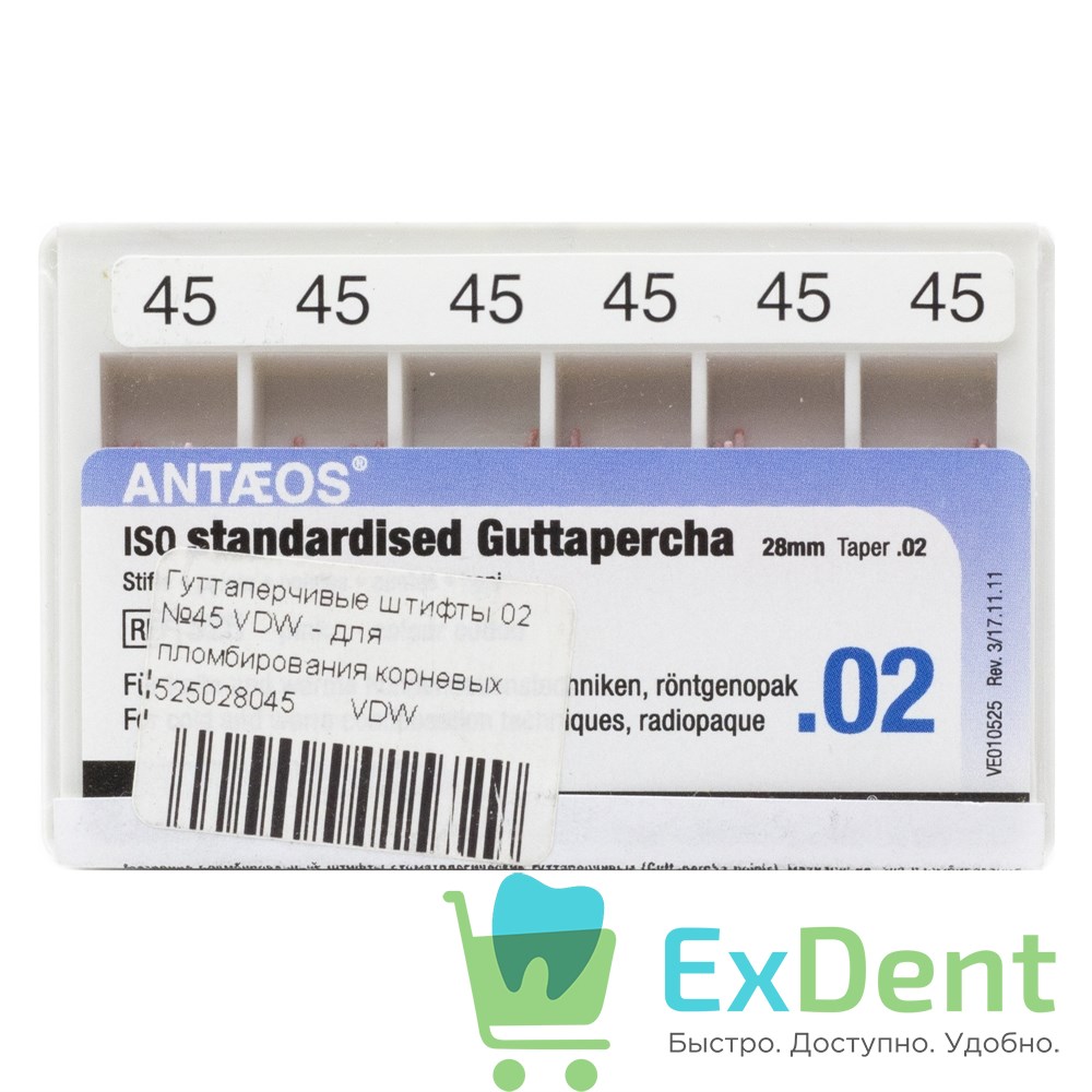 Купить Гуттаперчевые штифты 02 №45 VDW - для пломбирования корневых каналов (120 шт) произведенный компанией VDW вы можете в ExDent.ru по цене 0руб.
