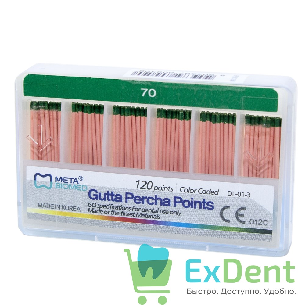 Гуттаперчевые штифты 02 №70 Meta - для пломбирования корневых каналов (120 шт)