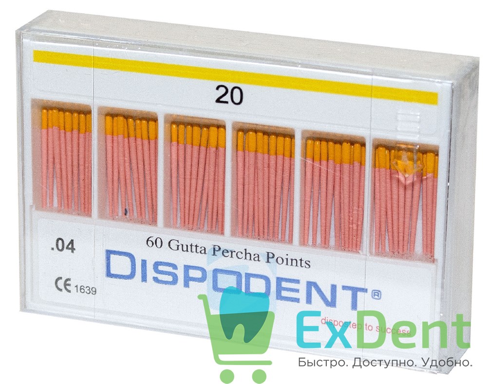 Купить Гуттаперчевые штифты 04 №20 Dispodent - для пломбирования корневых каналов (60 шт) произведенный компанией Dispodent вы можете в ExDent.ru по цене 390руб.