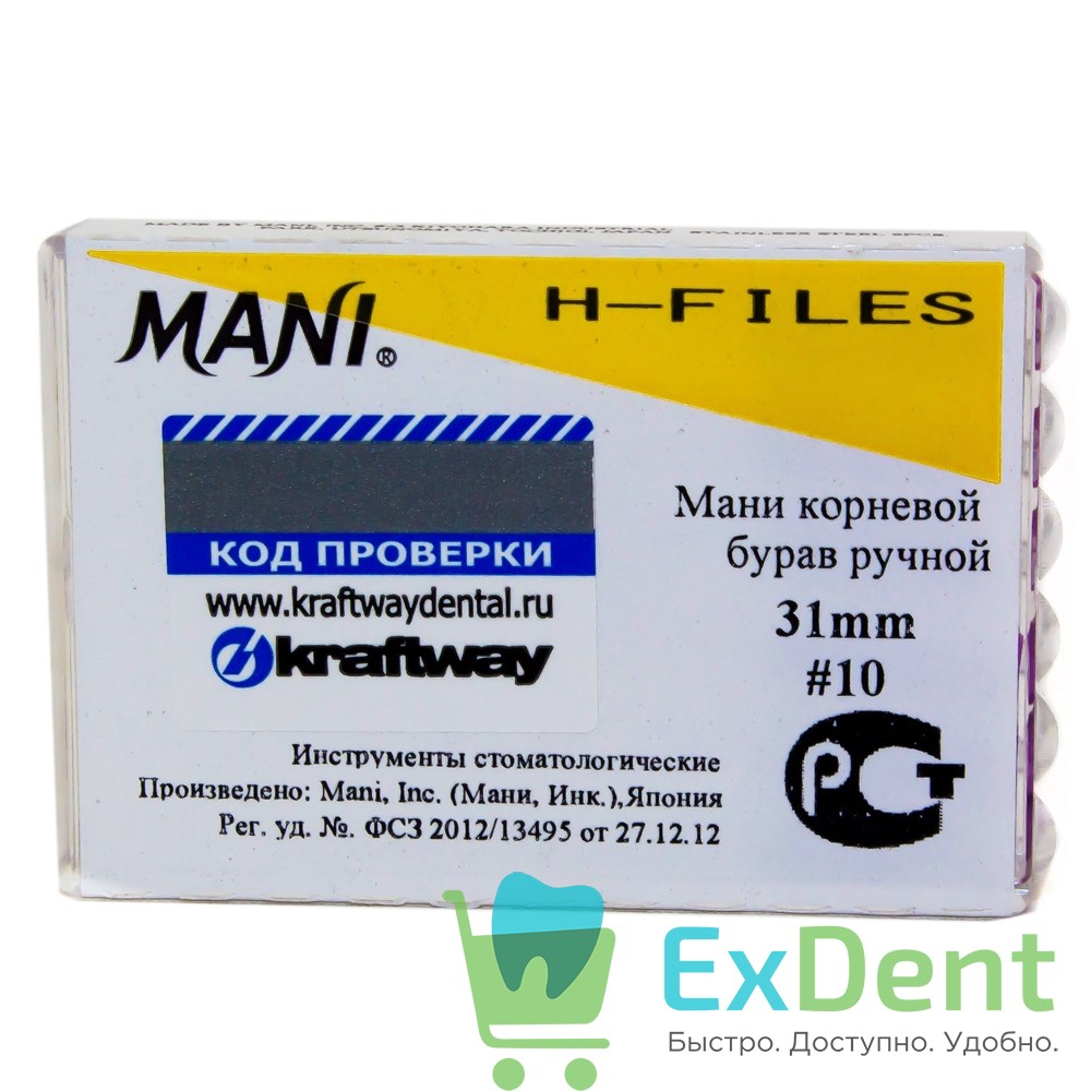 Купить H-Files №10, 31 мм, MANI, корневой бурав, ручной (6 шт) произведенный компанией Mani вы можете в ExDent.ru по цене 370руб.