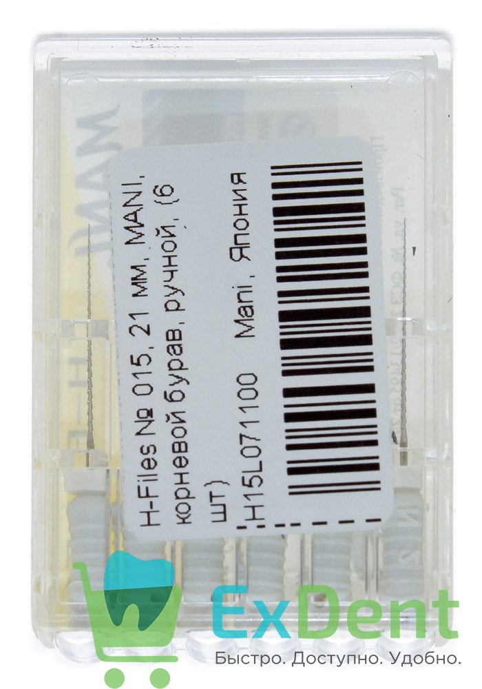 Купить H-Files №15, 21 мм, MANI, корневой бурав, ручной (6 шт) произведенный компанией Mani вы можете в ExDent.ru по цене 370руб.