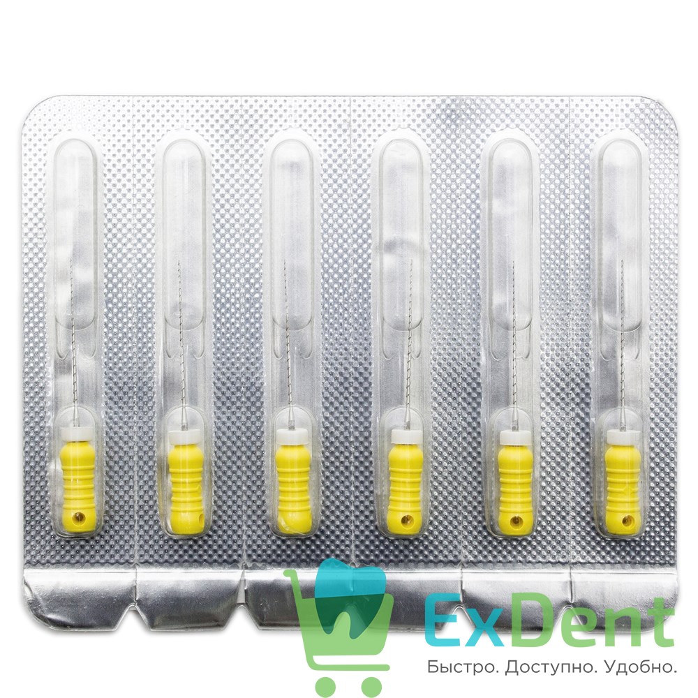 H-Files №20, 25 мм, Pro-Endo, расширитель канала, нержавеющая сталь, нестерильные (6 шт)