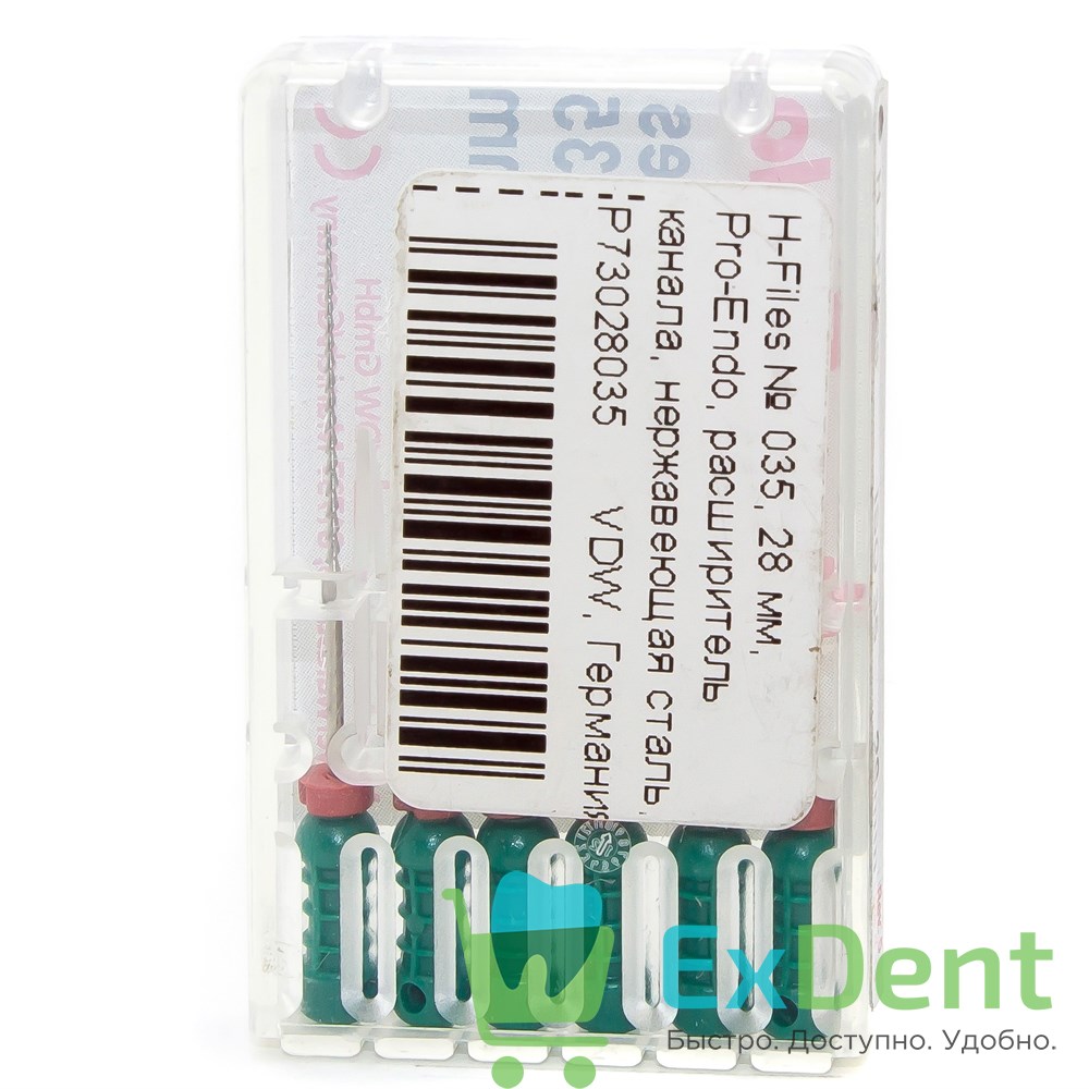 H-Files №35, 28 мм, Pro-Endo, расширитель канала, нержавеющая сталь, нестерильные (6 шт)
