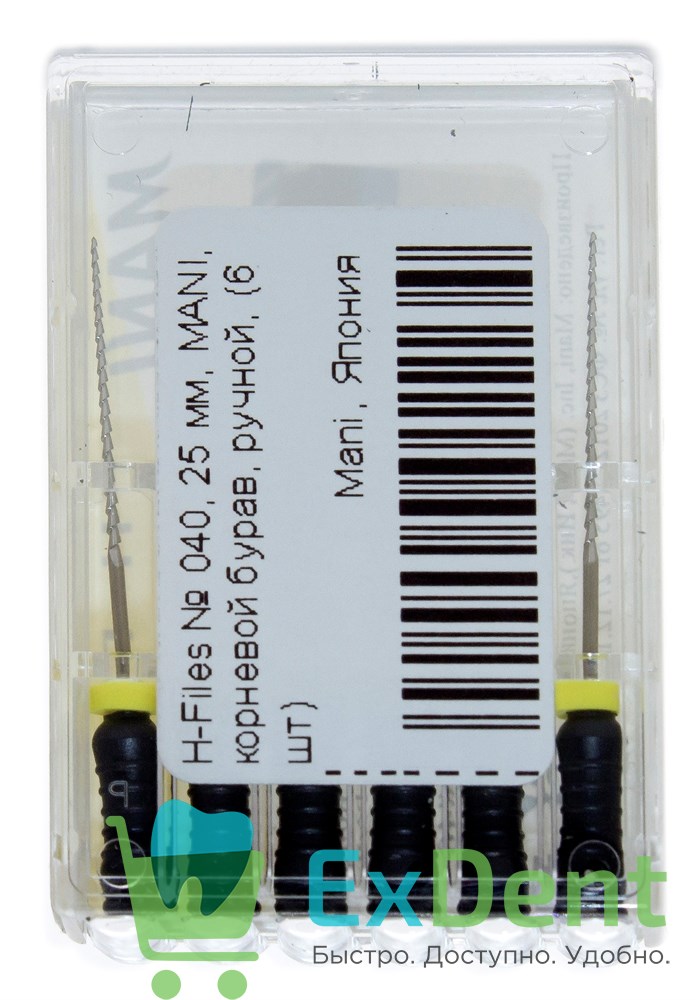 Купить H-Files №40, 25 мм, MANI, корневой бурав, ручной (6 шт) произведенный компанией Mani вы можете в ExDent.ru по цене 370руб.