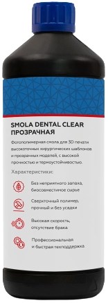 Фотополимер SMOLA Dental Clear - прозрачный стоматологический фотополимер. Смола предназначена для изготовления хирургических шаблонов. Материал обладает прозрачностью, что позволяет с легкостью визуализировать область хирургического вмешательства.