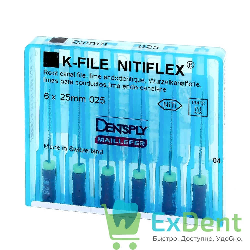 K-File Nitiflex (К-Файл Нитифлекс) - ручной эндодонтический инструмент для расширения корневого канала и удаления содержимого из него, изготовлен из никель-титанового сплава методом вытачивания, с увеличенной прочностью и эластичностью. Производитель Dentsply Maillefer.