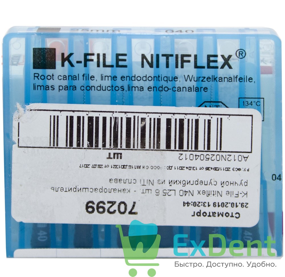 K-file Nitiflex №40, 25 мм, Dentply, никель-титан, ручной, для препарирования канала (6 шт)