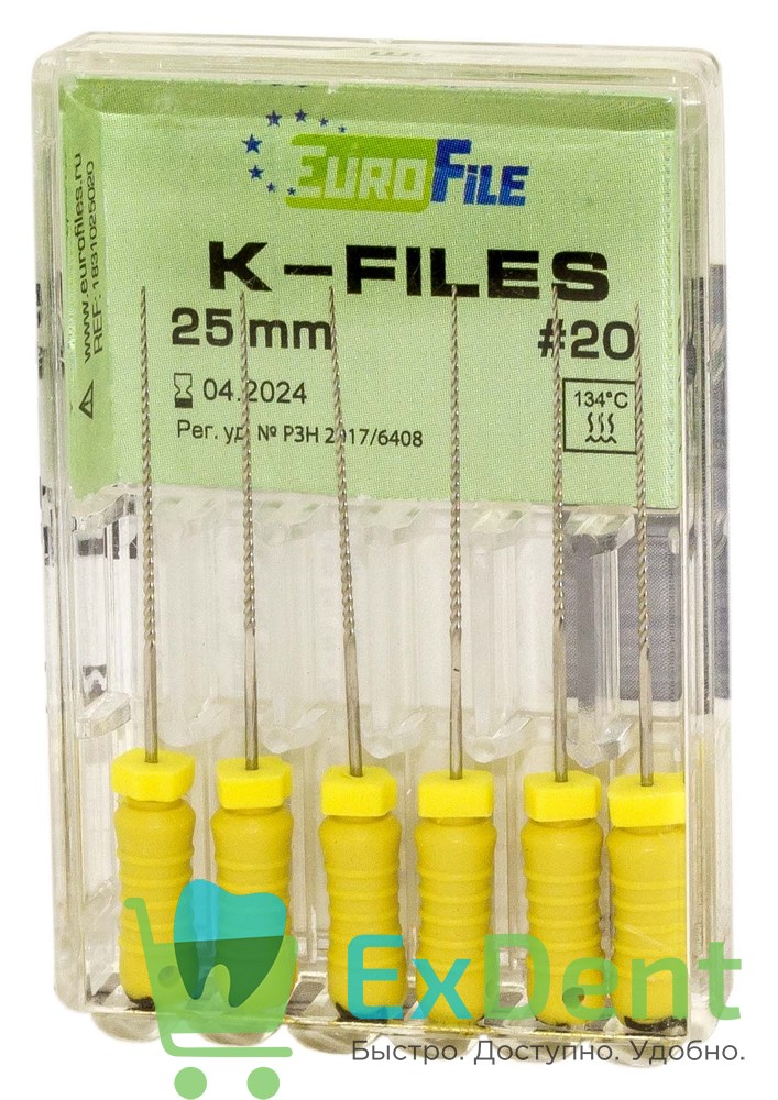 Купить K-Files №20, 25 мм, EuroFile, ручной каналорасширитель (6 шт) произведенный компанией EuroFile вы можете в ExDent.ru по цене 0руб.