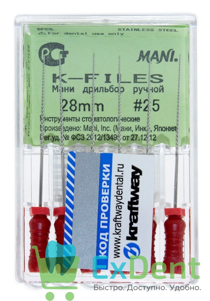 Купить K-Files №25, 28 мм, Mani, ручной каналорасширитель (6 шт) произведенный компанией Mani вы можете в ExDent.ru по цене 370руб.