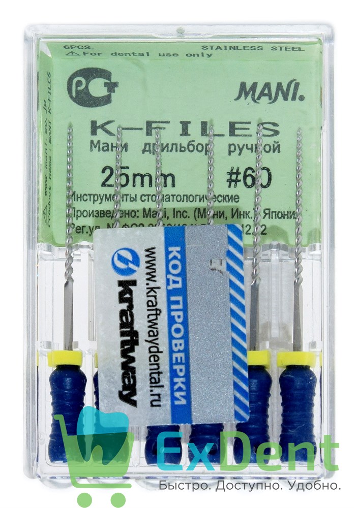 Купить K-Files №60, 25 мм, Mani, ручной каналорасширитель (6 шт) произведенный компанией Mani вы можете в ExDent.ru по цене 370руб.