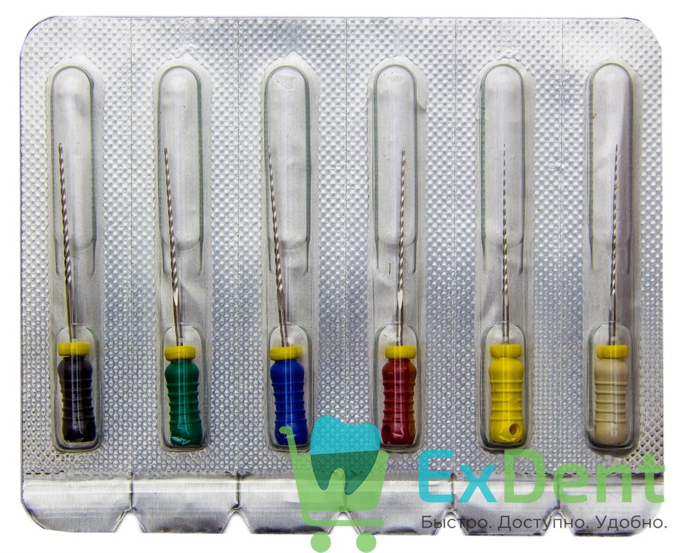K-Reamers №15-40, 25 мм, Pro-Endo, для препарирования канала, нержавеющая сталь (6 шт)
