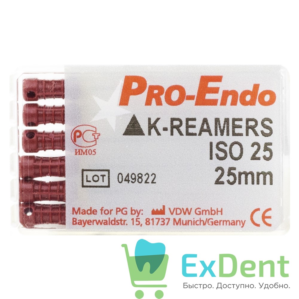 K-Reamers №25, 25 мм, Pro-Endo, для препарирования канала, нержавеющая сталь (6 шт)